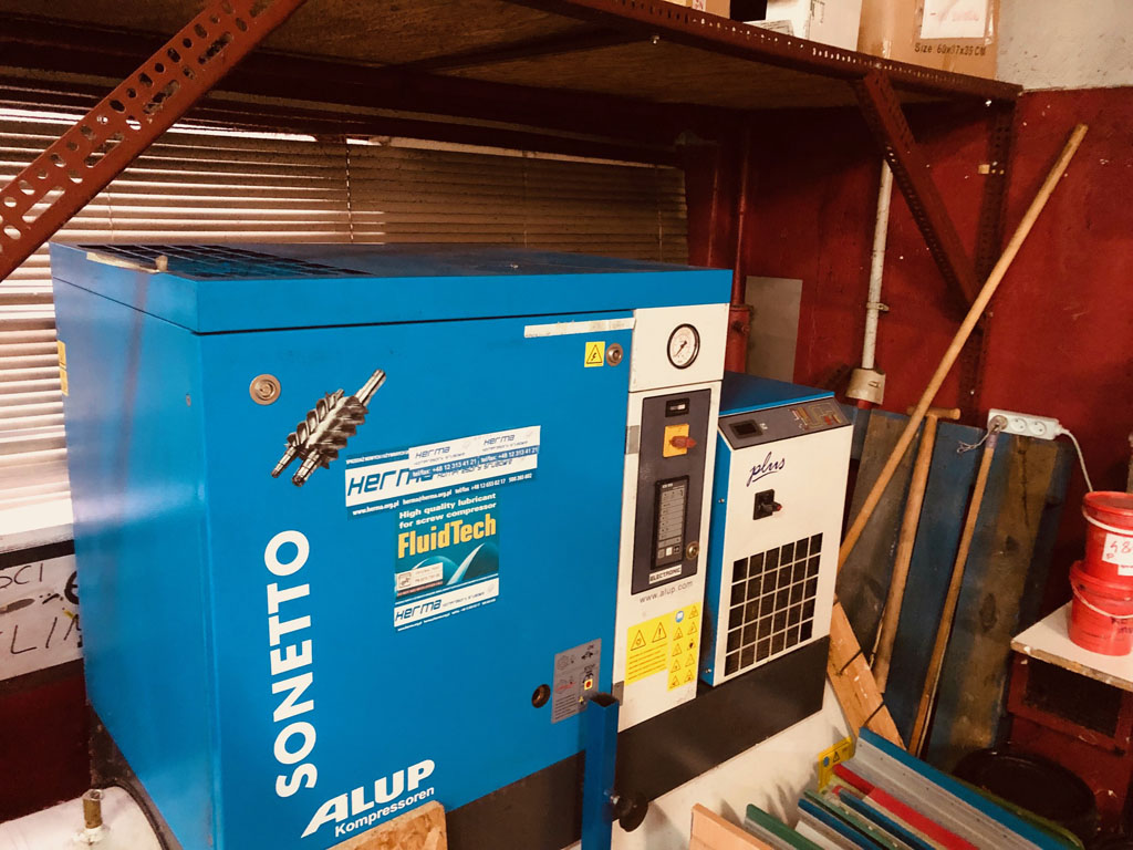 - kompresor Alup Sonetto o mocy 15,5 kW, 10 bar, zbiornik 400 L i osuszacz, rok produkcji 2012, przebieg 6310 godzin - cena 15000,-PLN netto.