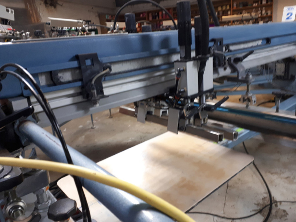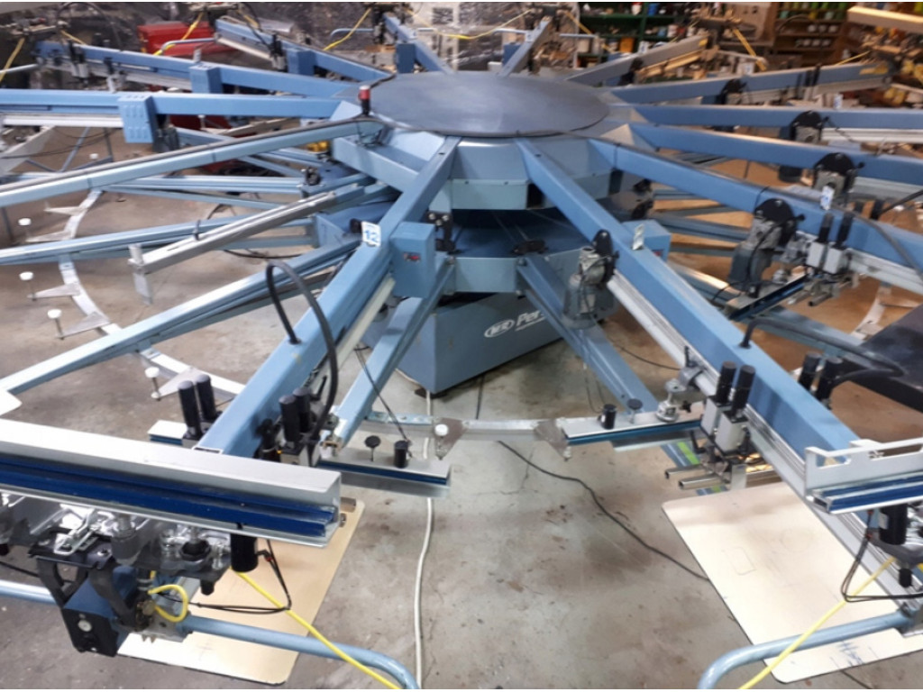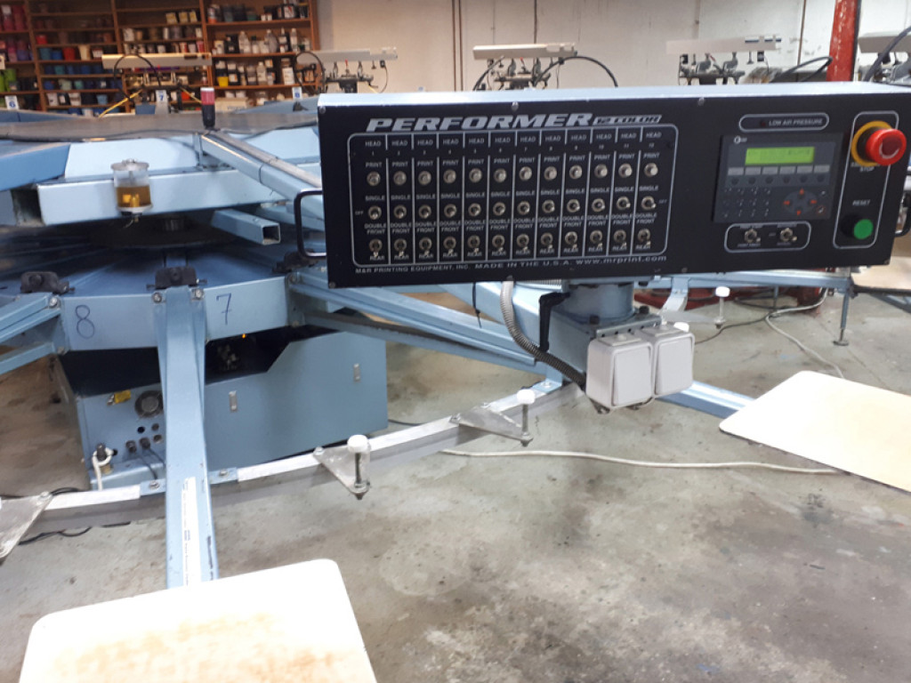 Automatyczna maszyna do nadruków na odzieży metodą sitodruku M&R PERFORMER ( Challenger II ).
