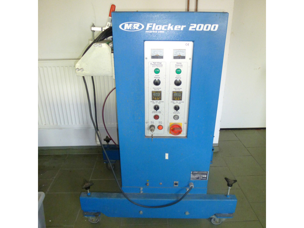 Automat do flokowania firmy Maag Flockmaschinen GmbH Urządzenie przeznaczone do flokowania na tekstyliach (przy karuzeli) oraz rzeczach płaskich np. papier, płyty itp. Aplikacja włókien na nadrukowaną bazę klejącą przy pomocy ładunków elektrostatycznych.
